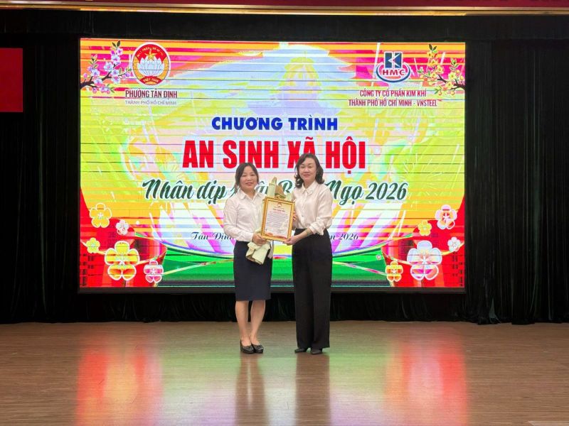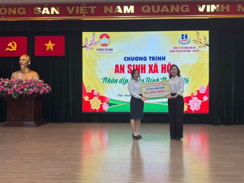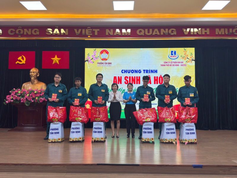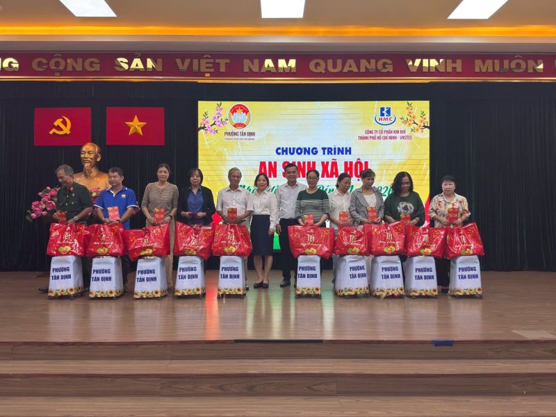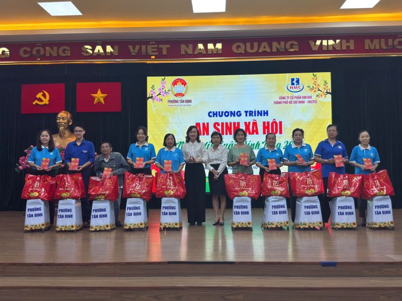 Nhân dịp Tết Bính Ngọ 2026, Công ty Cổ phần Kim khí Thành phố Hồ Chí Minh-VNSTEEL đã phối hợp cùng Ủy ban Mặt trận Tổ quốc Việt Nam phường Tân Định tổ chức chương trình trao tặng 100 phần quà Tết yêu thương đến đoàn viên, hội viên các đoàn thể và lực lượng chiến sĩ dân quân đã có nhiều đóng góp tích cực trên địa bàn phường.